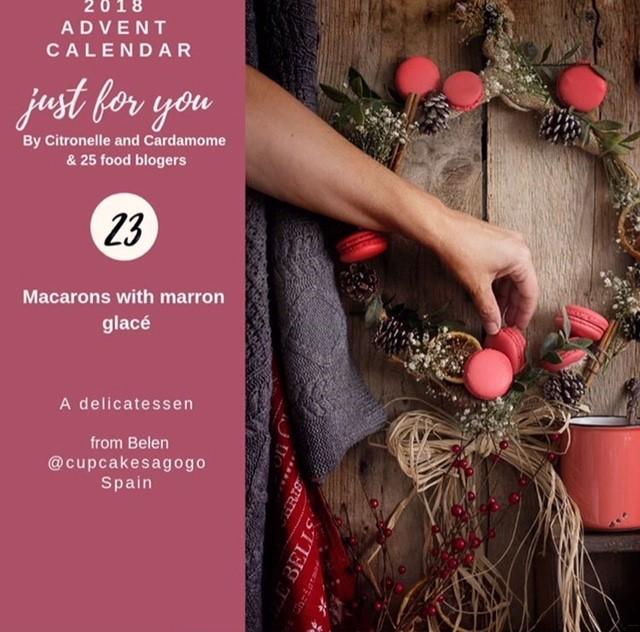 - 23 décembre avec Bélen d’Espagne, du blog Cupcake à gogo et ses macarons au marron glacé. Un de mes parfums préférés.. ici ma recette des macarons Mont Blanc au marron et mandarine