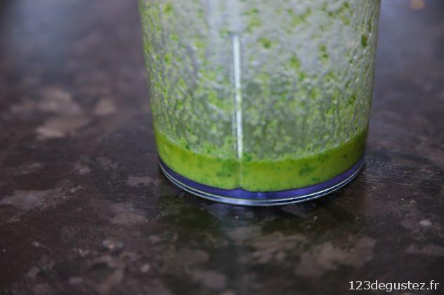 - Dans un petit mixeur ou un blender, ajouter le persil, huile, vinaigre sel et poivre et faire tourner.
