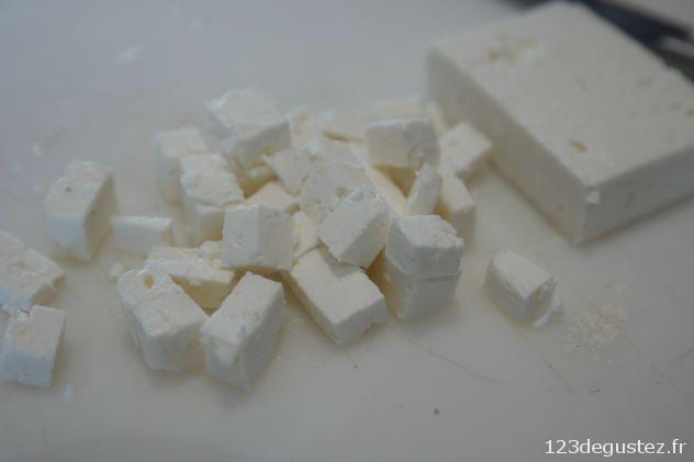 - Détailler la feta en cubes