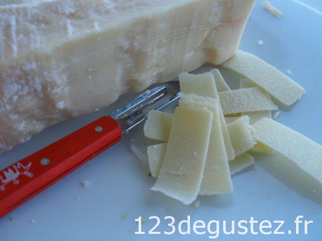Rajoutez des brisures de copeaux de parmesan (coupés à l’économes puis écrasés à la main)