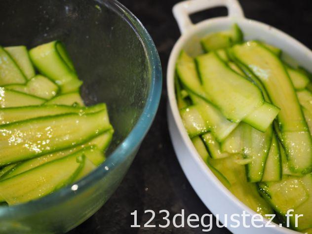 Pour faire une terrine, placez les courgettes en longueur par couche successives dans un petit moule en tassant bien entre chaque couche.
