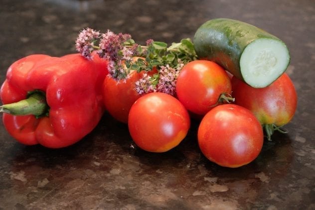 Si vous trouvez de l’origan sauvage au détour d’un chemin comme moi en Savoie, vous pouvez l’utiliser pour ce gaspacho (fleurs et feuilles)
