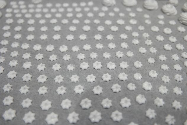 - Après durcissement, verser la ganache dans une poche à douille avec une douille décor ou une douille cannelée et mouler dans un plat, dans des verrines ou des petites assiettes. A défaut, utiliser 2 cuillères pour faire des quenelles.