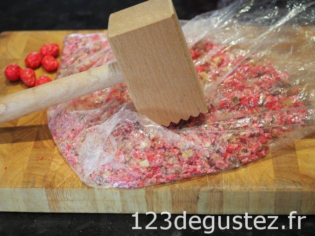 - Mettre les pralines dans un sac de congélation. Les concasser grossièrement avec un marteau ou un maillet en bois