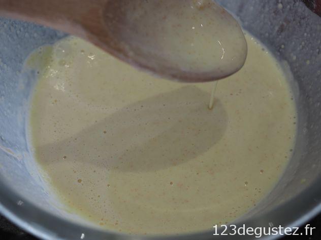 - Ajouter juste un peu de lait et mélanger à la cuillère en bois. Il ne doit plus y avoir de grumeaux à ce stade